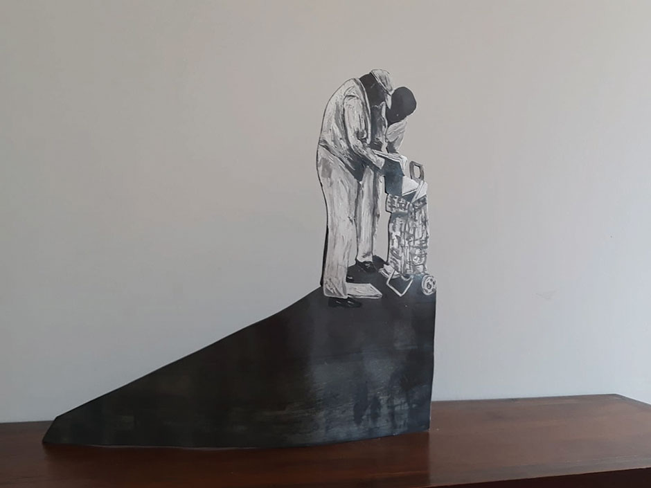 ¿Qué hacen y quiénes hacen? es la pregunta que plantea el artista Alfonso Berridi (San Sebastián, 1958 – Madrid, 2013) en la exposición del mismo título, inaugurada en marzo del pasado año de manera virtual a causa de la pandemia. Sus piezas, hechas en plomo y cartón, en una fusión entre el dibujo y la escultura, muestran a grupos de individuos ensimismados en una tarea incierta que llevan al espectador a buscar pistas que desvelen respuestas, como le ocurre a la escritora y periodista Aloma Rodríguez, autora, entre otros libros, de Los idiotas prefieren la montaña (Xordica, 2016).