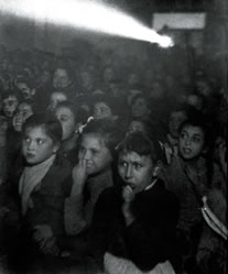 Miedo y fascinación. Eso leemos en las caras de los niños que miran la pantalla en la que se proyectan imágenes que no podemos ver. La gran sábana blanca radiante, llena de vida, se nos escapa a nuestra derecha y sólo el haz de luz que viene desde el fondo de la sala y que sobrevuela las cabezas de los niños nos da prueba de su existencia. Esa linterna que ilumina el polvo se posa sobre la inmensa pared y la transforma. El mundo se abre, la sala lo contiene todo. Para atrapar la atención de los ojos infantiles recurre al miedo, al misterio indescifrable, al enigma que está fuera de nuestro alcance. A partir de aquí, la oscuridad cobra otra dimensión. Siempre estaremos esperando que irrumpa el haz de luz desde el fondo de nuestros cuartos, ese momento en que el miedo no es miedo solamente, es expectación. Tiempo suspendido durante unos segundos para luego desvanecerse, porque a una escena le sigue otra. Es el transcurrir del tiempo lo que los ojos quieren apresar en la pantalla. De un tiempo inventado que suplanta el tiempo que avanza, como siempre, en la sala oscura, llena de sillas de tijera, pegadas unas a otras, llena de voces y gritos de asombro. De miedo y fascinación. Estos espectadores son conquistados para siempre por la magia del cine. Son sus descubridores. Rememorarán, pasados los años, ese olor a polvo y a sudor, a pipas de girasol, a aire enrarecido, el ruido de la máquina de proyecciones, el chirriar de las sillas. Nada será comparable a aquellas primeras películas, pero el poder de atracción que ejercieron fue tan intenso que aún se busca su rastro cada vez que entramos en una sala de cine.