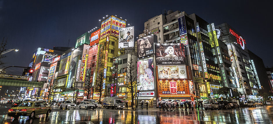 Edificios iluminados en Aikhabara, zona comercial de Tokio. Foto IQ Remix, CC BY-SA 2.0