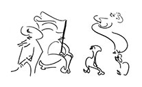 Kaum hast Du unsere Zusammenkunft in Berlin beschrieben, habe ich schon von ihr geträumt. […] Wir giengen auch auf der Gasse spazieren […], wir giengen zwar nicht eingehängt, aber wir waren einander noch näher, als wenn man eingehängt ist. Ach Gott, es ist schwer, auf dem Papier die Erfindung zu beschreiben, die ich gemacht hatte, um nicht eingehängt, nicht auffällig und doch ganz nahe bei Dir zu gehn […]. Wie soll ich es also nur beschreiben, wie wir im Traum gegangen sind! Während beim blossen Einhängen sich die Arme nur an zwei Stellen berühren und jeder einzelne seine Selbständigkeit behält, berührten sich unsere Schultern und die Arme lagen der ganzen Länge nach aneinander. Aber warte, ich zeichne es auf. Eingehängstein ist so: [Zeichnung 1]. Wir aber giengen so: [Zeichnung 2].