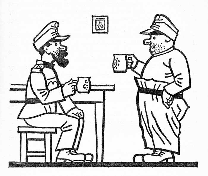 Asegura Walter Benjamin en El narrador que los soldados regresaban enmudecidos del frente en la Gran Guerra, la primera conflagración global de la historia en la que los demonios de la tecnología, el nacionalismo y la rapiña imperialista hicieron saltar en pedazos el sueño de orden burgués finisecular. No es el caso de Švejk. El buen soldado habla sin parar, rompe el silencio, larga por los codos, en tabernas, en cuarteles, ante coroneles, sacerdotes o políticos, y su bendita ingenuidad los desnuda a todos, ridiculizando los grandes ideales que llevan a los hombres a matarse entre sí. Švejk cumple órdenes tan al pie de la letra que sale a la luz la estupidez manifiesta del orden y la ley. El resultado es tan divertido como descorazonador. Cada vez que alguien le pregunta «¿Quién es usted, Švejk?», el buen soldado contesta: «A sus órdenes, señoría, soy un idiota oficial». Y es que, como le confesó una vez su creador a un amigo: «Si quieres ser libre en este mundo, has de parecer un idiota».