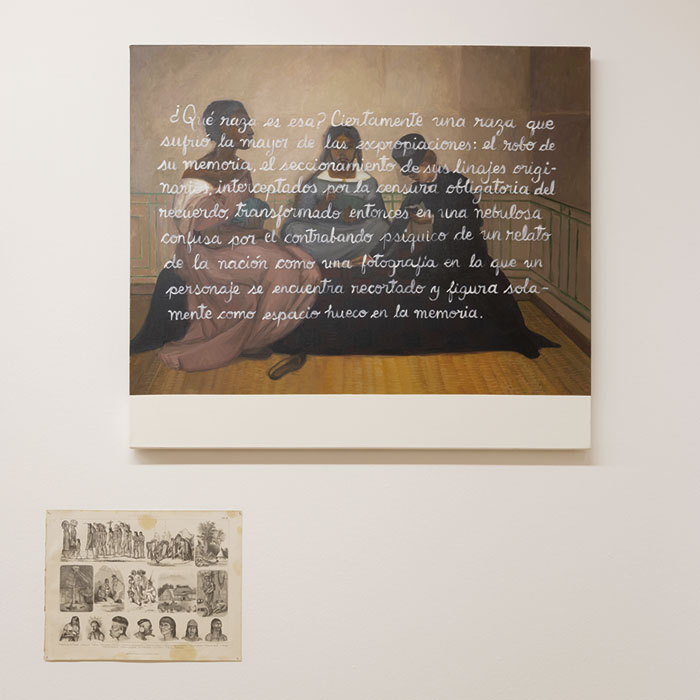 En un determinado momento, me doy cuenta de que la pintura tendía a naturalizarlo todo occidentalmente. Fue entonces cuando percibí su potencia. No sé si era una potencia del pasado, o que se mantenía en el presente, o si se potenciaba en el rezago de las nuevas tecnologías. No sabría ubicarla en el tiempo, tal vez es transversal. Pero en esta esquinita, en esta pinturita del bodegón, en ese bodegoncito de la esquina de la casa, en este paisaje que ves mientras estás esperando en el dentista, ocurría una normalización y una naturalización de la forma de ver. En ese momento empecé a darme cuenta de que cuando vemos representaciones precolombinas, por ejemplo, inmediatamente pensamos que estamos en un periodo concreto, en este caso en el pasado, porque hemos naturalizado nuestra idea de progreso. Fue como un despertar. De repente te preguntas: ¿por qué necesitamos representar las cosas de esta manera? ¿Qué pasa con estas otras sensibilidades, estas otras relaciones con las cosas que no necesitan de ese tipo de naturalismo? Y ¿cómo te deshaces de esa construcción? A partir de esas preguntas, me di cuenta de que la pintura seguía ejerciendo de matriz y pensé que quizá la manera de desnudarla fuera a través de ella misma. Seguramente hay otras formas, pero para mí la más natural fue buscar dónde está el error, dónde está el engaño y desmontarla, no para destruirla. Nuevamente aparece nuestra forma polarizada de ver las cosas entre lo bueno y lo malo, pareciera que uno quiere desmontar para destruir al otro, cuando simplemente lo hace para reconocerlo.