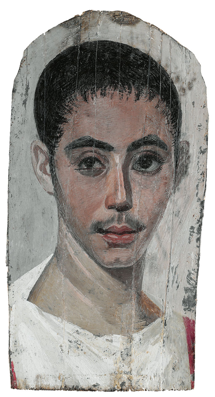 16. La historia de estos retratos –se contabilizan cerca de mil– es la de un resurgimiento. Destinados a acompañar al muerto en su viaje hacia «el país que ama el silencio», como lo llamaban los egipcios, y ubicados en el lugar del rostro, entre la red de vendajes de la momia, su destino no era otro que ser contemplados por los vivos. El mundo de Alberti, nuestro mundo, no es el suyo. Por el contrario, son retratos de vivos enviados a la muerte y, como tales, no nos estaban destinados.
