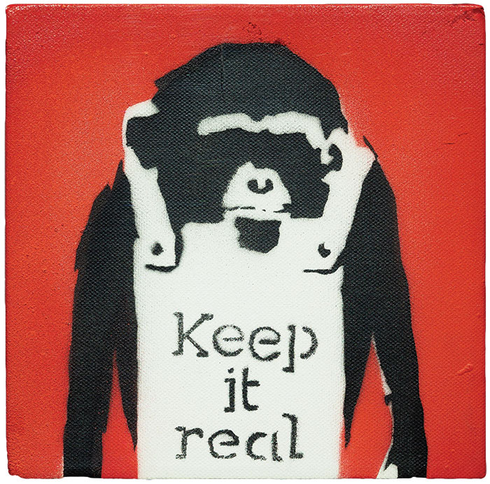 Al margen de este tipo de consideraciones, ¿de qué nos distrae todo esto? Con respecto a Banksy, parece que debemos situarnos en un marco articulado en torno a dos grandes temas: en primer lugar, su relación con la institución del arte, es decir, todo el debate en torno a los límites del arte propiciado por el arte urbano y si debe estar en un museo o no y, en segundo lugar, su relación con el mercado del arte; a saber, si el artista es cómplice o no del sistema –aunque sus obras sean críticas con el mismo–, simplemente porque está participando en las lógicas comerciales. De lo que nos distrae esto es de la obra de Banksy y de la estrategia de representación que asume para realizar estas denuncias. Ciertamente, ahí sí creo que sale perdiendo el artista, por eso Banksy controla muy bien el discurso en torno a su figura, como también lo controlaba Warhol, por cierto. De ahí que Exit Through The Gift Shop gire eminentemente en torno a estos temas. Es como si estuviera más cómodo en esos marcos y no en uno que se pregunte: ¿cree usted que su estrategia es la más efectiva para pensar fuera de la caja, como propone?, ¿a quién está llamando a pensar? Lo que propongo es evitar entrar en estos callejones sin salida. Con esto no quiero decir que no deban hacerse tales análisis: no se trata de aceptar acríticamente cualquier tipo de propuestas volviendo a un formalismo estéril, se trata de que estos discursos no encierren por completo la obra, que no agoten las interpretaciones.