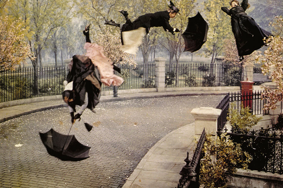 Varias candidatas al puesto de institutriz se ven arrastradas por una ráfaga de viento, según la versión cinematográfica de 1964