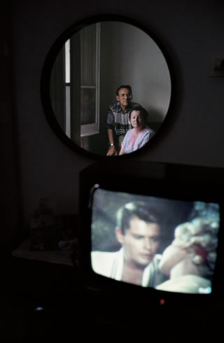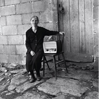 Señora con el receptor de radio adquirido con el dinero enviado por su hijo, emigrante en América
