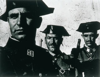Tres tricornios Tres rostros curtidos por el sol y a la vez deslumbrados por él. Tres tipos adustos cuyos ojos no vemos, como tampoco vemos las leguas de camino que...