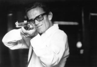 ¿Recuerdan aquel cartel donde aparece un hombre de perfil sujeto al palo y al hierro del garrote? (Pascual Duarte). El fondo es gris, como lo es el oficial de gorra...