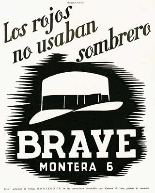 El anuncio no puede ser más directo y expresivo. Un único eslogan, el sencillo dibujo de un sombrero, y la dirección del establecimiento comercial, BRAVE, sito en el número 17...