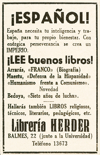 La barcelonesa Librería Herder tiene un sólido prestigio entre los estudiantes por su gran surtido de libros técnicos, filosóficos, de moral… Además, la Universidad está cerca. Pero en los primeros...