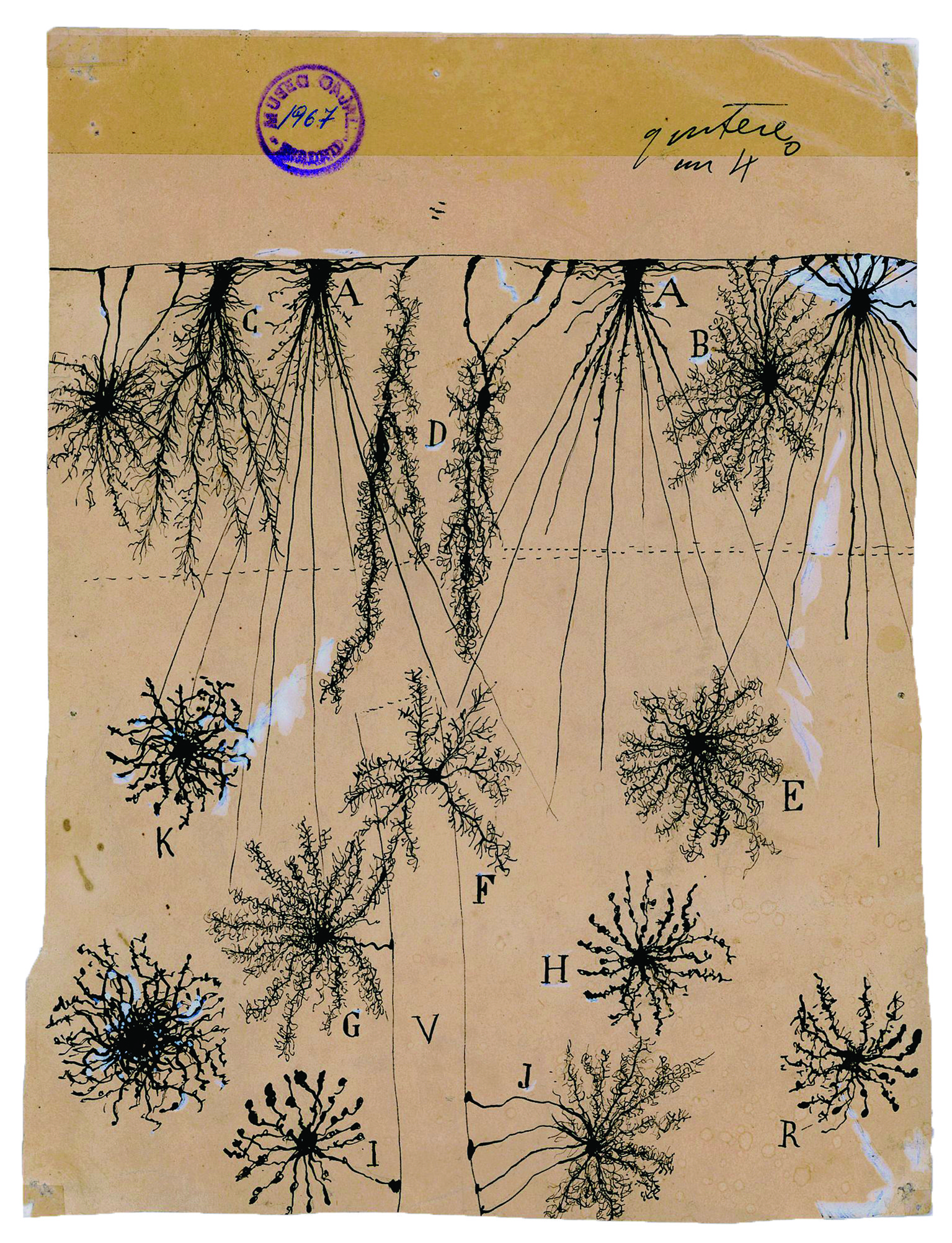 Cajal eligió estudiar el cerebro, la estructura más compleja del universo conocido, con 86.000 millones de piezas en constante cambio y una fuerza evocadora única, pues allí residen nuestros recuerdos, nuestros aprendizajes, nuestro presente, nuestra forma de ser, nuestro futuro y nuestros proyectos. Cajal describe por primera vez todas las zonas del cerebro de todas las especies de vertebrados e invertebrados, a diferentes edades y en condiciones normales, experimentales y patológicas. En sus dibujos no hay errores, son tan asombrosos que cuesta creer que una persona, con los medios de la época y junto a un pequeño equipo haya sacado adelante esta obra sobre la que se ha construido la neurociencia del siglo xx y el xxi. Por ejemplo, en un dibujo del núcleo de una célula, fechado en 1920, aparece la doble membrana nuclear, que únicamente se ve con un microscopio electrónico, aunque, en vida de Cajal, solo existía el microscopio óptico.